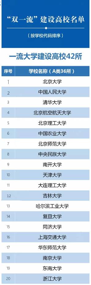 日前,教育部、财政部、国家发展改革委印发《关于公布世界一流大学和一流学科建设高校及建设学科名单的通知》,公布世界一流大学和一流学科(简称“双一流”)建设高校及建设学科名单。