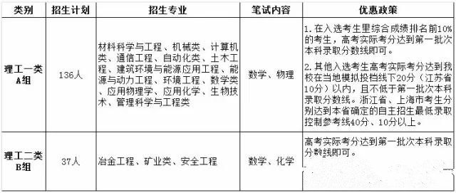 自主招生面向全国招生,专业为我校理工科的特色专业,分为理工一类和理工二类,分别含不同专业和优惠政策,具体详见下表。