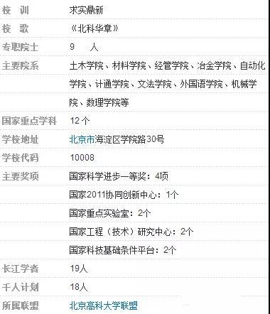 北京科技大学于1952年由天津大学(原北洋大学)、清华大学等6所国内著名大学的矿冶系科组建而成,现已发展成为以工为主,工、理、管、文、经、法等多学科协调发展的教育部直属全国重点大学,是全国首批正式成立研究生院的高等学校之一。1997年5月,学校首批进入国家“211工程”建设高校行列。2006年,学校成为首批“985工程”优势学科创新平台建设项目试点高校。2014年,学校牵头的,以北京科技大学、东北大学为核心高校的“钢铁共性技术协同创新中心”成功入选国家“2011计划”。