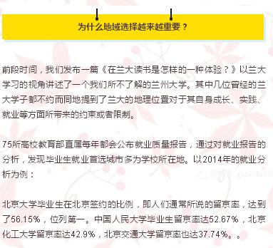 中西部高校也是如此。如中国地质大学(武汉)毕业生在湖北省的就业比重达30.47%,合肥工业大学在安徽省的就业比例有31.11%,四川大学留川工作的毕业生,占该校就业总人数的近一半。